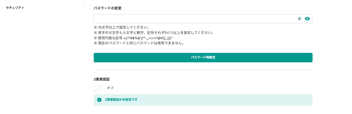 設定した2要素認証の設定解除を希望される際は、2要素認証設定画面でのトグルスイッチをオフにしてください。
