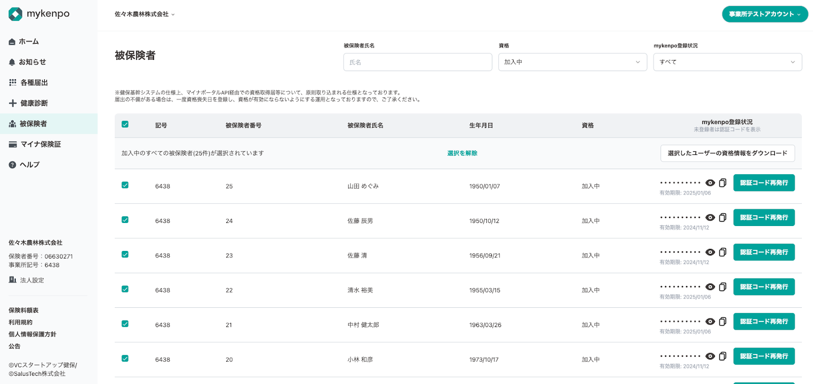 これまで、mykenpoの加入者向けアカウントにユーザー登録いただく際には、健康保険証とともに郵送していた認証コードが必要でした。健康保険証の発行停止に伴い、事業所アカウントからの認証コード即時発行機能と、デジタル認証アプリでのユーザー登録機能をリリースしました。
