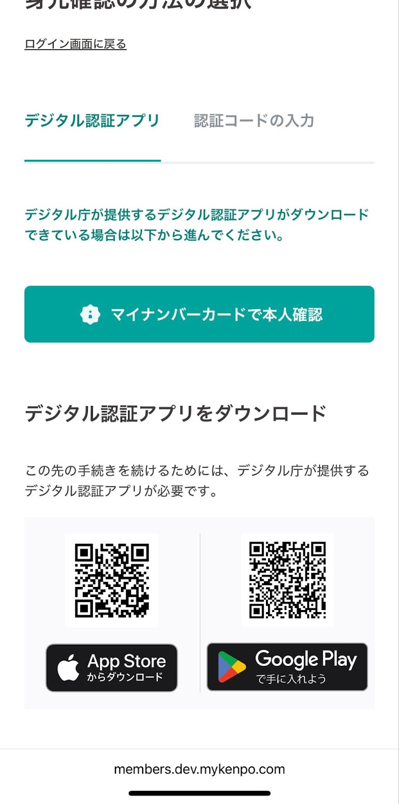スマートフォンのブラウザから、mykenpo上の新規登録ページにアクセスし、デジタル認証アプリでの登録を選んだ場合、デジタル認証アプリがうまく起動しないことがあります。